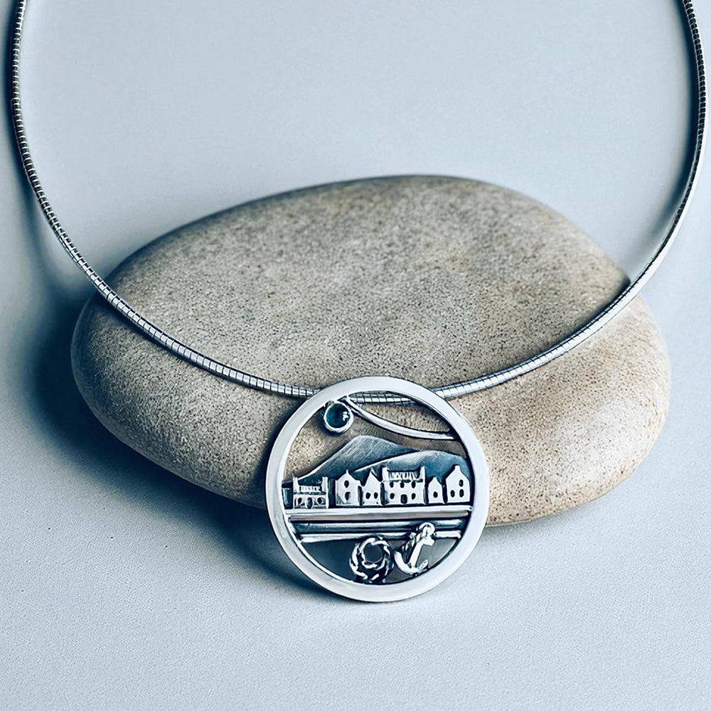 Anchor inspired silver pendant by Celina Rupp Jewellery. This design signifies island life where the fishermen go to sea for many days, and captures the warmth of returning home and being anchored to the land.