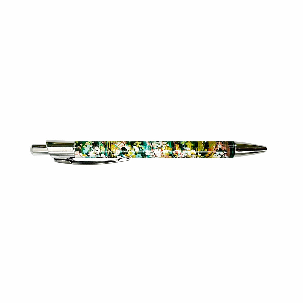 Stunning ball point pen by award winning artist Avril Thomson Smith. The floral design has been reproduced from one of Avril’s beautiful paintings and hand printed in the gallery. This pen will make writing a delight.