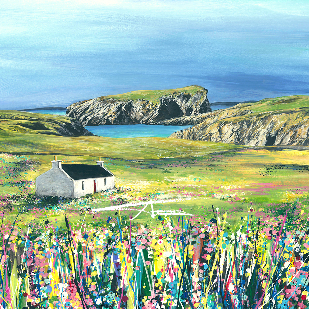 Limited edition print by award-winning artist Avril Thomson Smith. Print is inspired by the rugged Shetland landscape and is a homage to Avril’s homeland. Limited edition giclée print created with ultra-high-quality ink which offers UV protection. Printed on luxurious acid free 308gsm German fine art paper. All prints are produced in our gallery in Shetland. Limited edition prints are signed, numbered and come with an authenticity certificate.